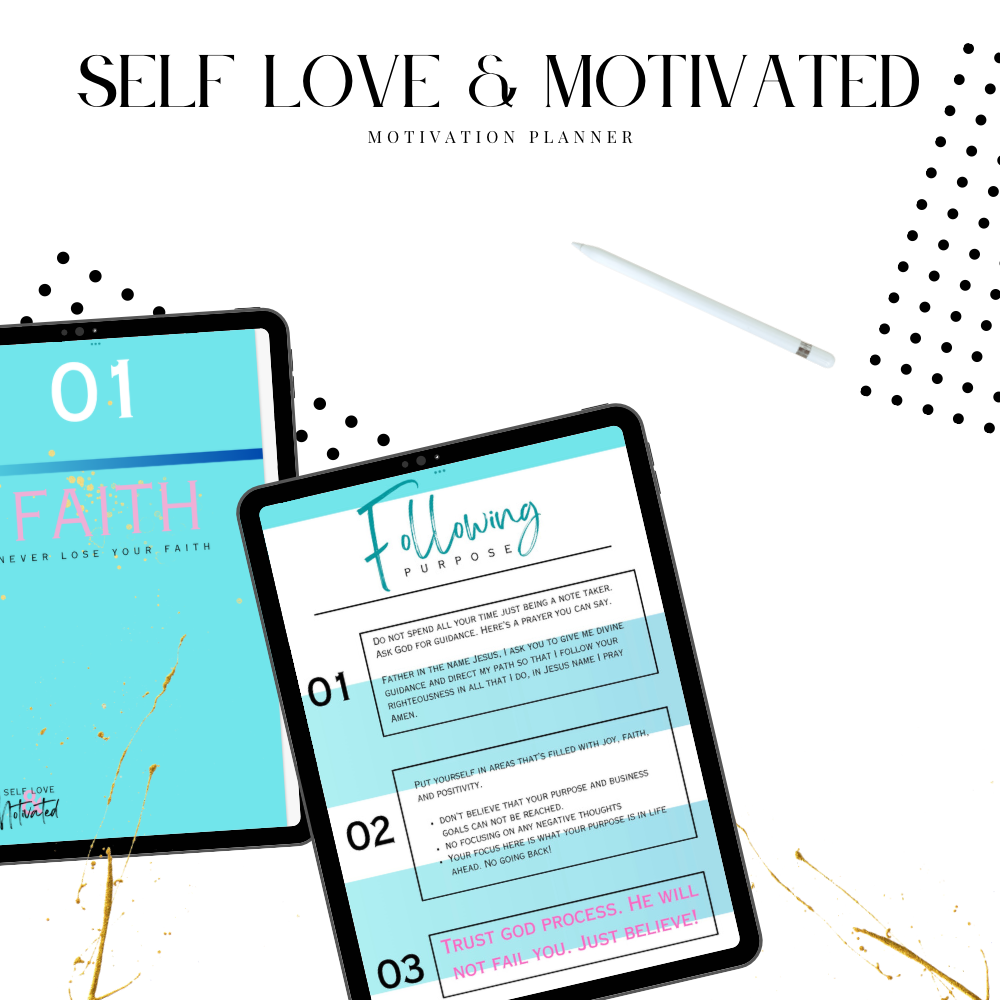 ⚫️ Download the digital planner by clicking the PDF file labeled: “Self Love and Motivated”.